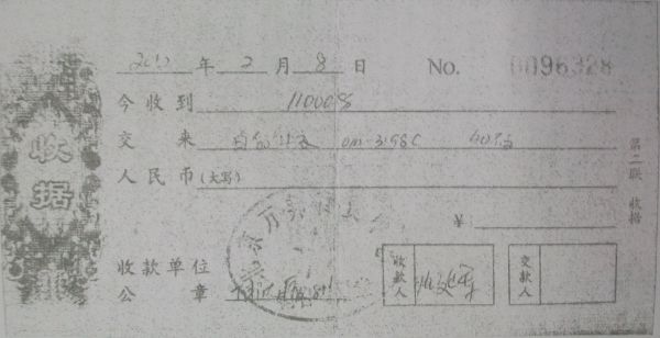 Я, слава богу в Китае кое-что понимаю, и мне доподлинно известно, что в КНР запрещены внутри страны покупки за иностранную валюту. Вообще, с долларами и евро там морока своеобразная — в районе Яболу в Пекине, где русские в основном отовариваются, свободная конвертация в полный рост, хоть рублями хоть евро, долларами, но счет в любом случае будет в юанях. Бланк такового вот чека вы можете купить даже в деревенском продуктовом магазине — это совершенно стандартная форма и явно в фирменном магазине такие чеки выписывать не станут. А если станут, то только в юанях. А 11 тысяч юаней, (даже не долларов) — внушительная сумма! Столько строит хороший мотоцикл или мини-трактор. Соответственно будет счет-фактура, которая в нормальном магазине будет выглядеть так: